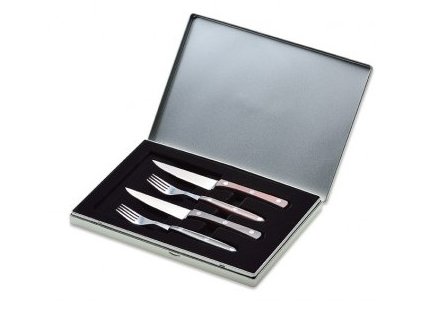 Sada v plastovom puzdre obsahuje štyri nože vhodné na spracovanie zeleniny. Nože sú vybavené plastovou rukoväťou v moderných citrónových farbách: