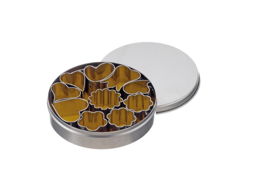 Sada 10 vykrajovačov rôznych motívov v kovovej dóze - viď obrázok.