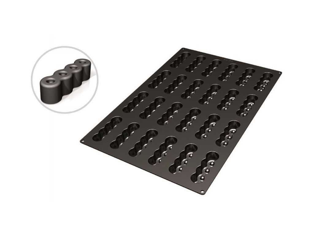 Silikónová forma na pečenie dezertov je ideálnym nástrojom pre efektívne a jednoduché pečenie. Forma obsahuje 24 ksmotívov, každý s rozmermi priemer 117 x 33 mm, výška 34 mm a objem 103 ml.