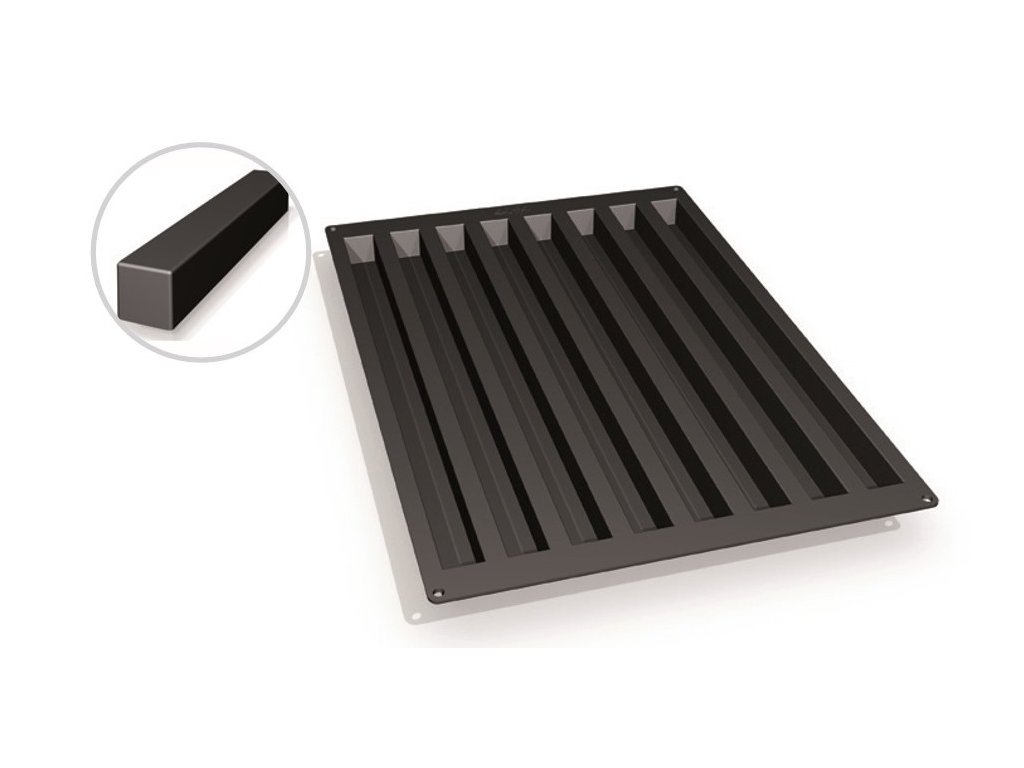 Profesionálna silikónová forma určená na pečenie, mrazenie a tvarovanie moderných cukrárskych dezertov. Vhodná pre profesionálne prevádzky aj náročných domácich cukrárov. Umožňuje naraz pripraviť 8 rovnakých motívov s čistým, podlhovastým tvarom.